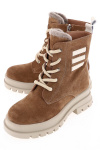 Зимние ботинки из натуральной кожи на танкетке помогут создать смелый образ, который запомнится и выделит вас из толпы. Минималистичный и строгий дизайн модели, выполненной в коричневом цвете, прекрасно гармонирует с толстой, массивной подошвой. Берцы из замши на шерсти теплые и удобные — в них вам будет комфортно даже в морозную погоду.